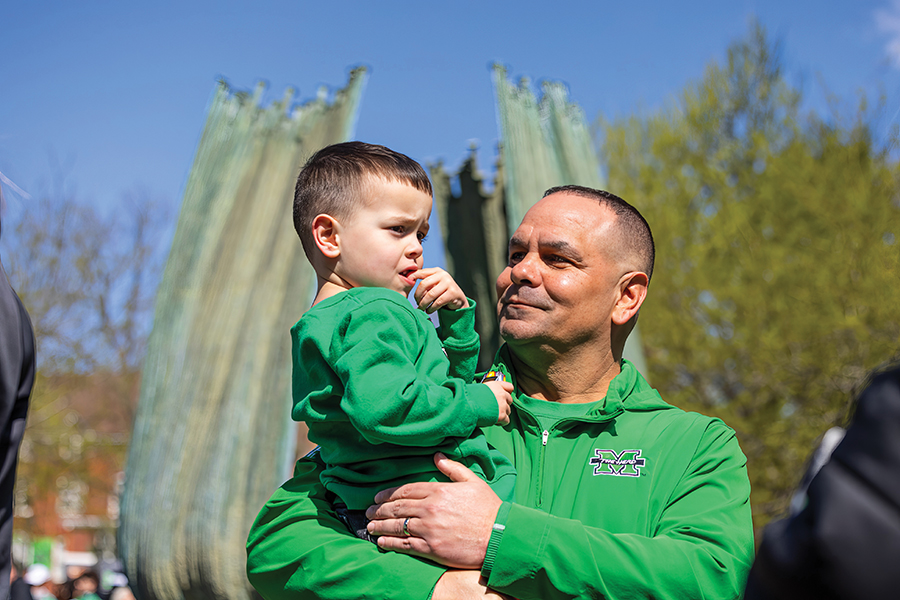 There were plenty of off-the-field activities that allowed Herd players to get to know each other and develop chemistry before their first game on Aug. 30. Two days before fall camp, Coach Gibson had his players take the mile run down 20th Street to the Marshall Memorial at Spring Hill Cemetery. For many of the players, the hallowed ground where the granite cenotaph sits is the foundation of Marshall football.