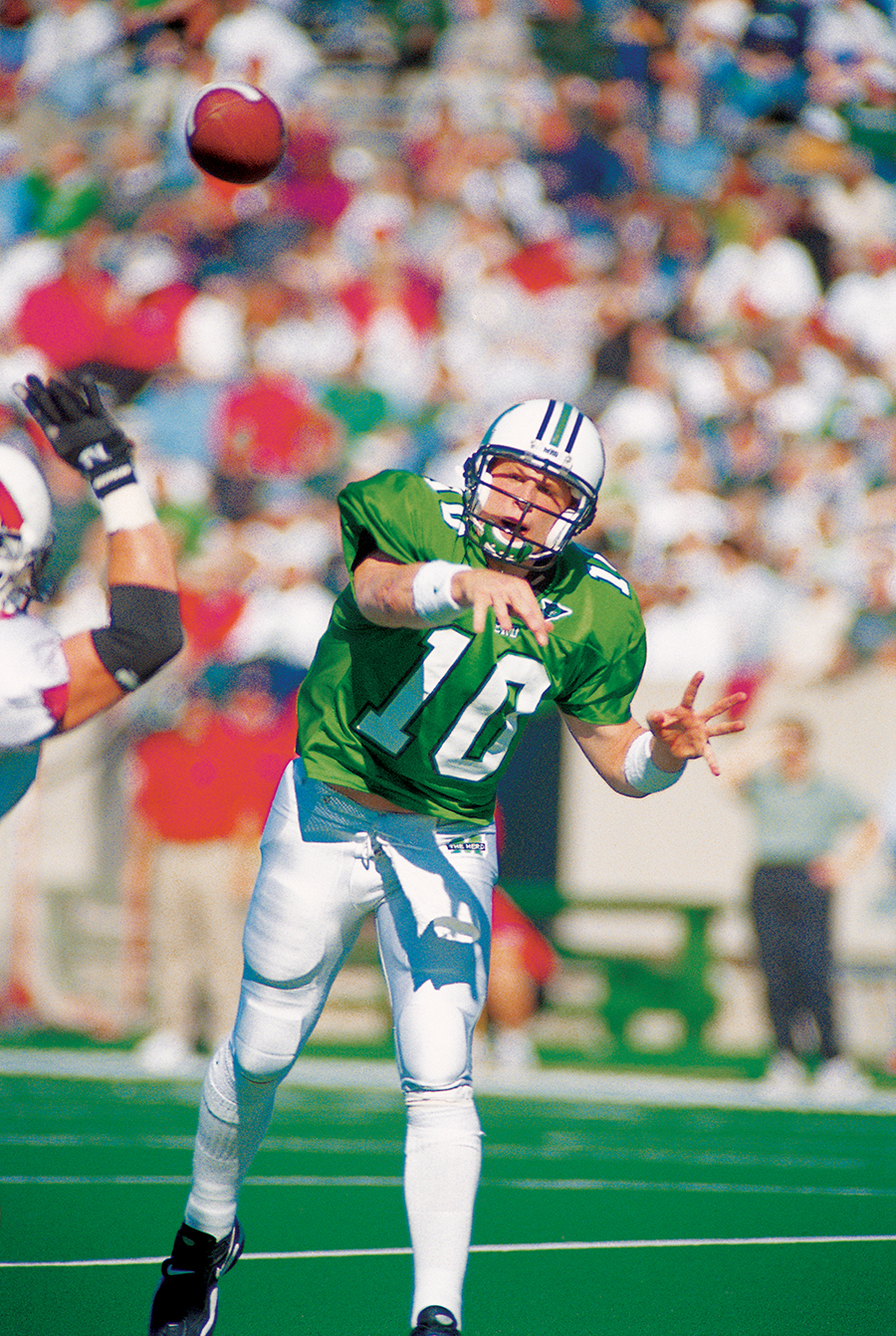 Randy Moss, once called the greatest high school football player he had ever seen by Notre Dame coach Lou Holtz, spent two years at Marshall University where he broke numerous school and NCAA records. In 1996 he helped the Herd go undefeated and earn their second NCAA I-AA national championship, before leading the program back to NCAA I-A competition in 1997. He went on to have a Hall of Fame career in the NFL and is arguably considered the greatest wide receiver in the history of the game.